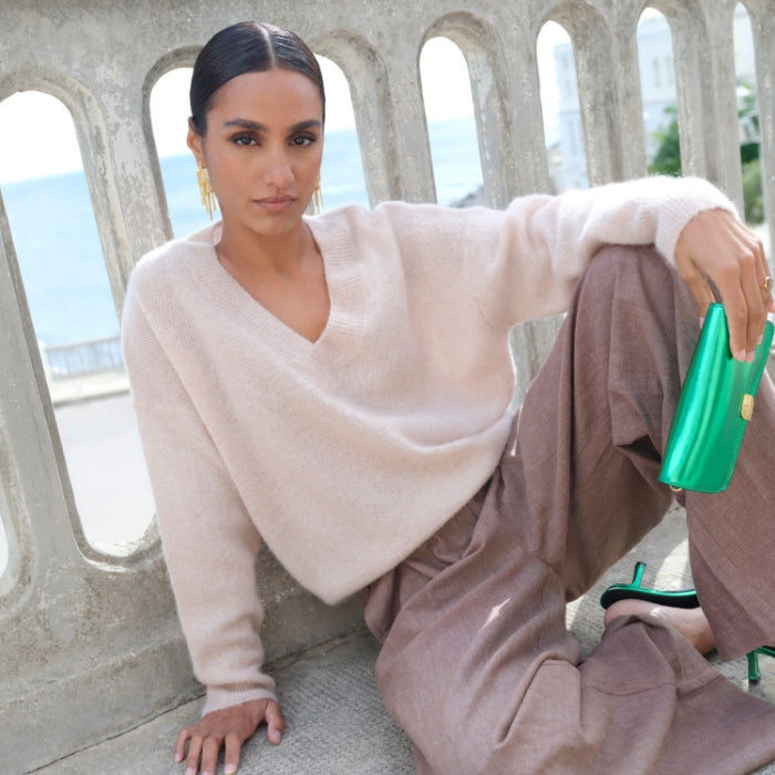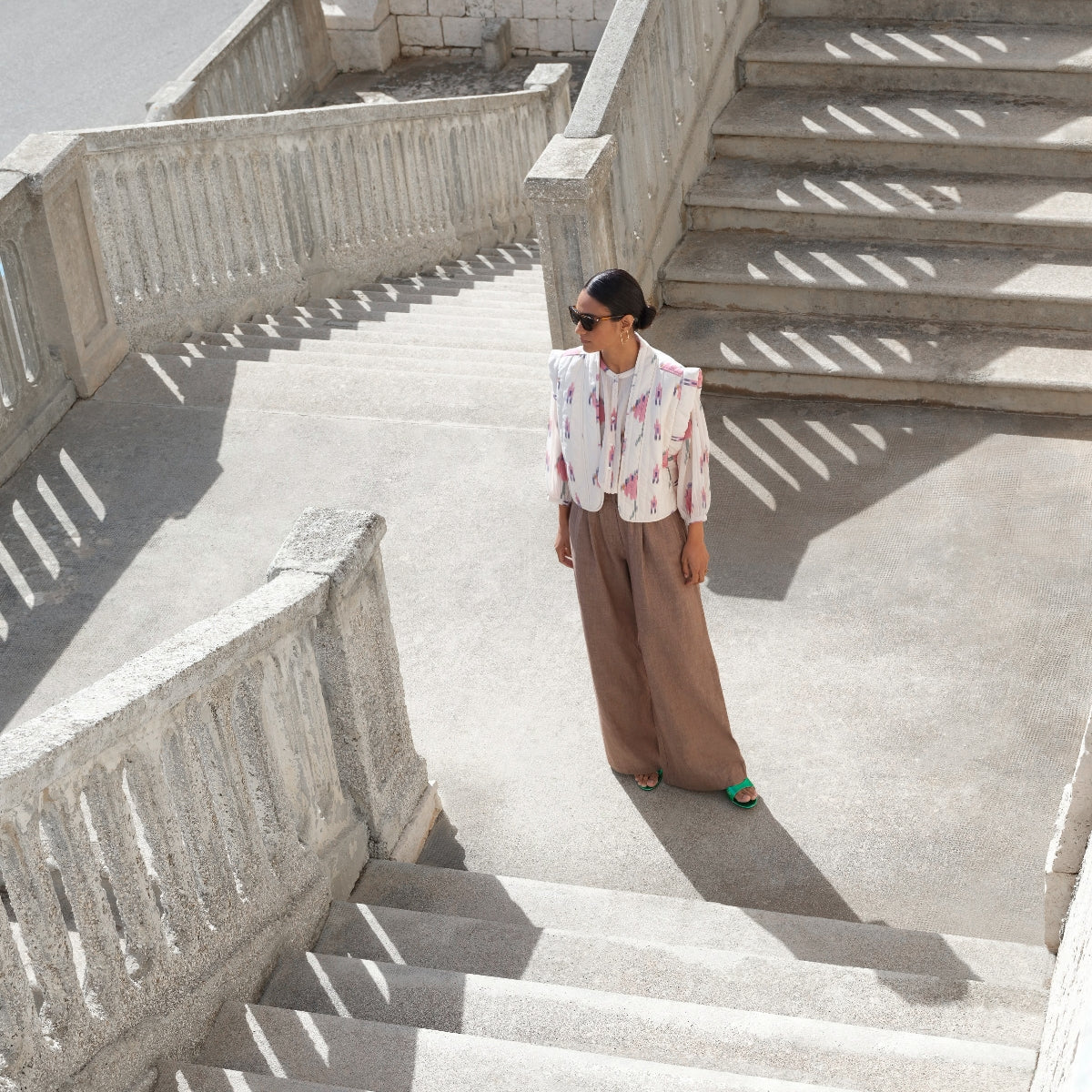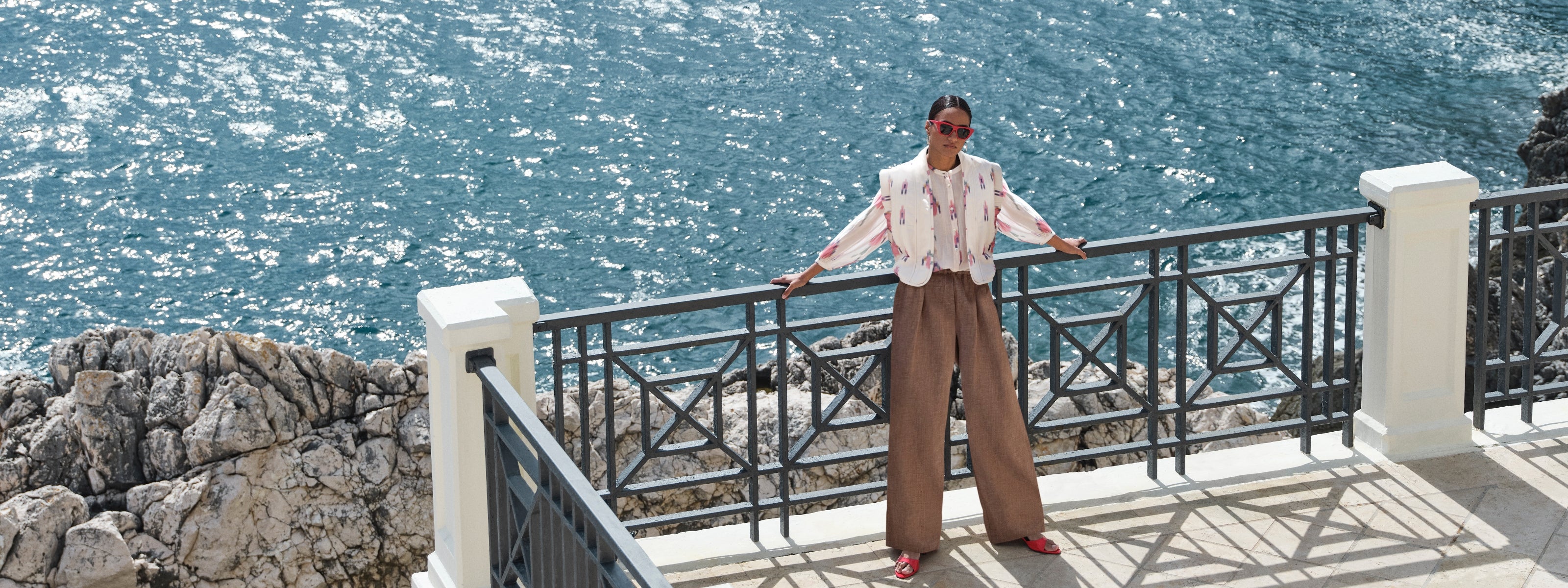 Sunlit Treasures nodigt je uit om nieuwe plekken te ontdekken, van verborgen straatjes tot karaktervolle cafés. De collectie ademt zachte groentinten, vernieuwde knitwear en zonnige details die je moeiteloos begeleiden van ochtendwandeling tot spontane avond.