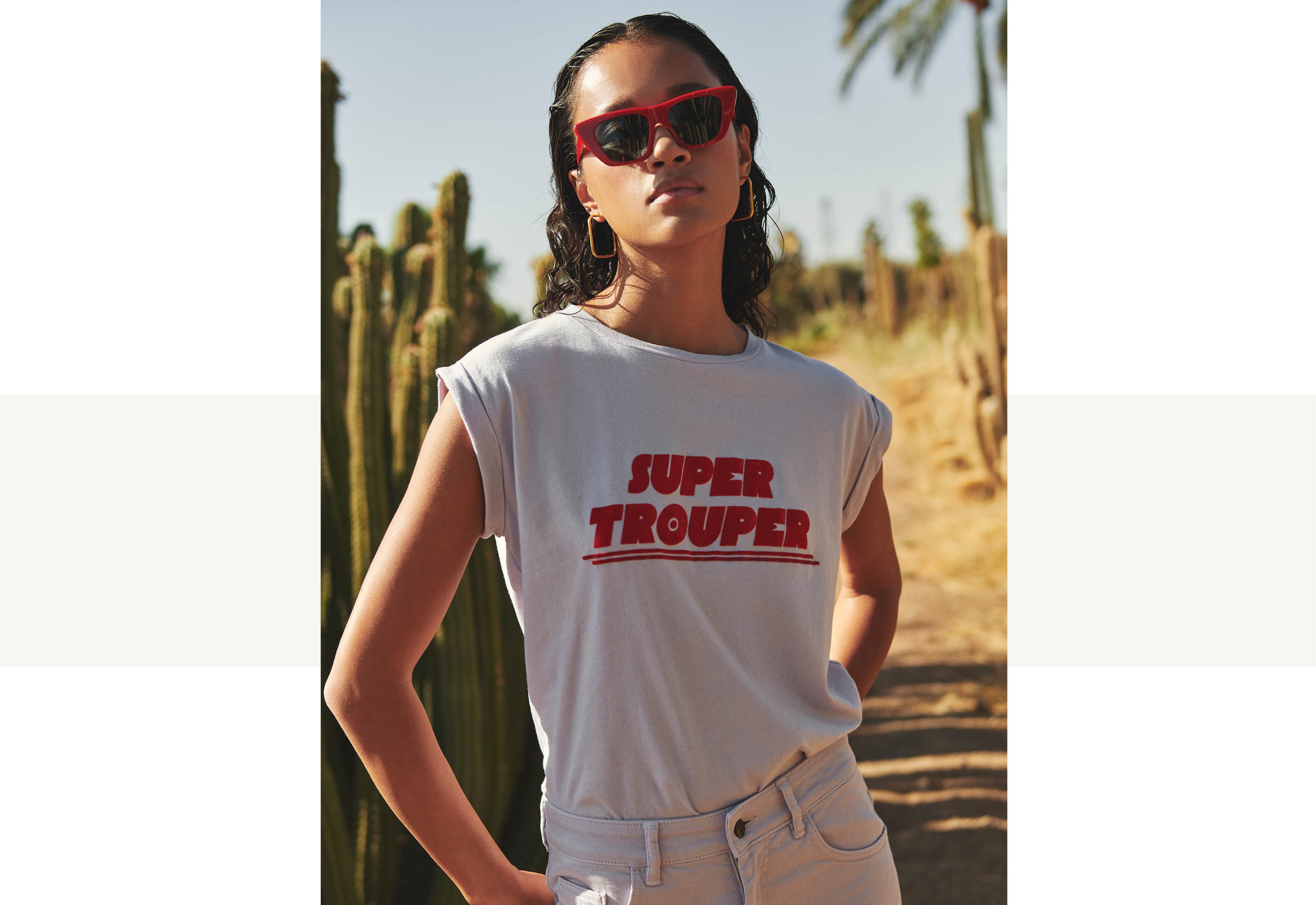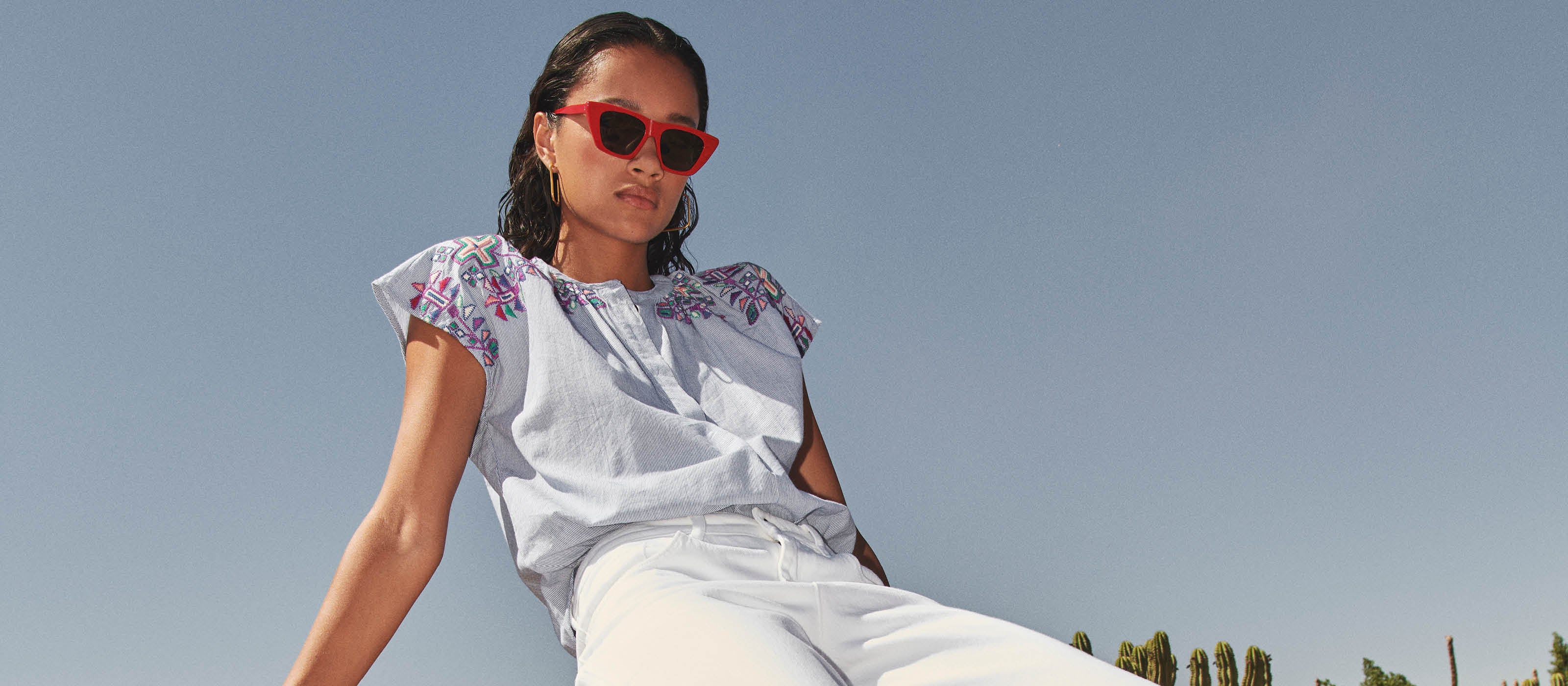 From the striking red total-look suit to the relaxed jersey sets, this part of the collection embodies laid-back sophistication. Tops with delicate embroidery add a refined touch, while the lightweight striped ensemble captures the spirit of carefree, sun-drenched days.