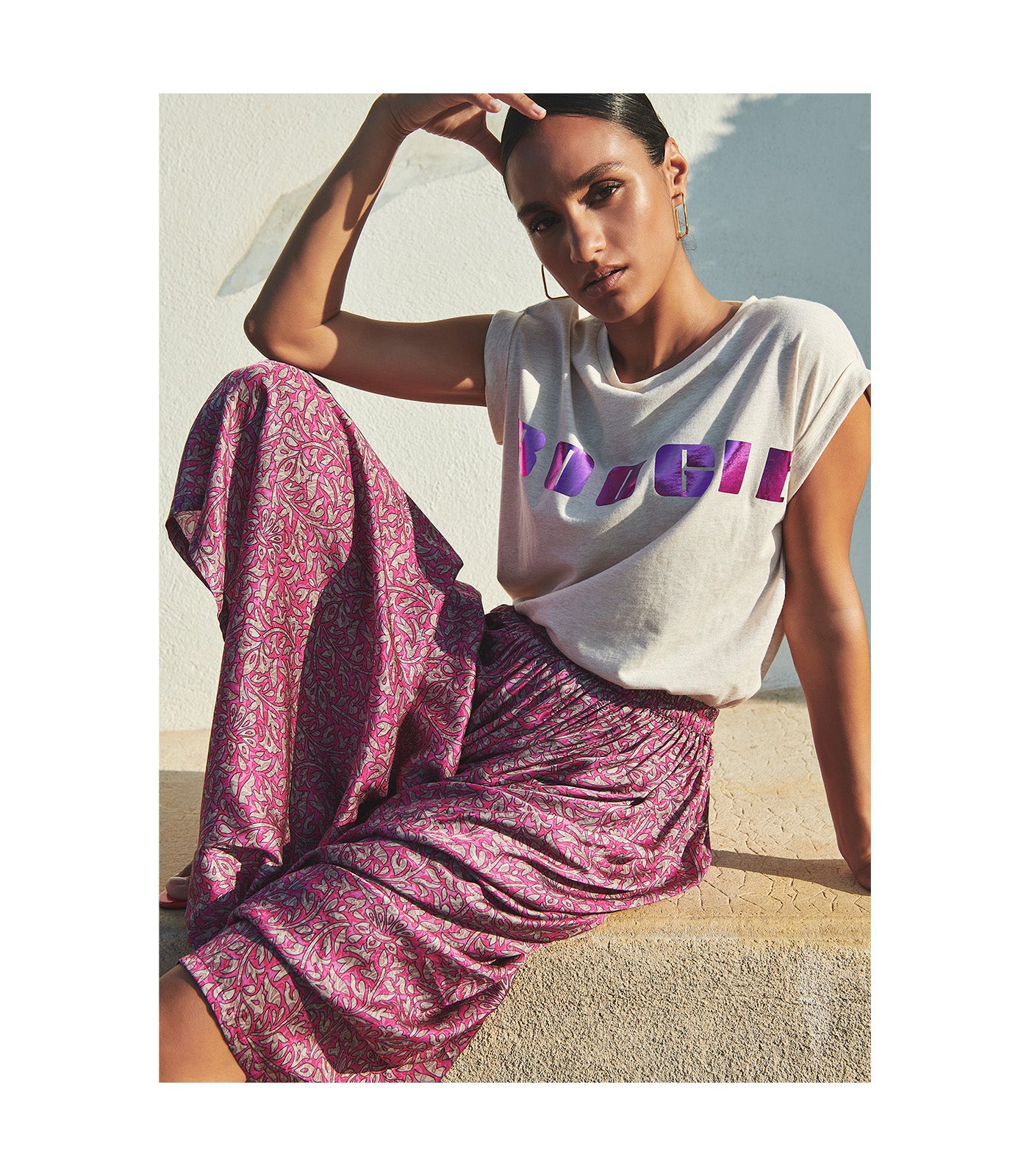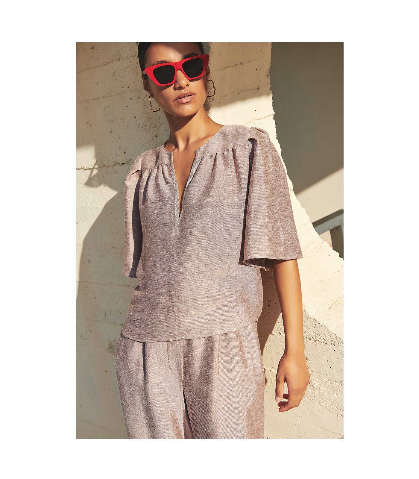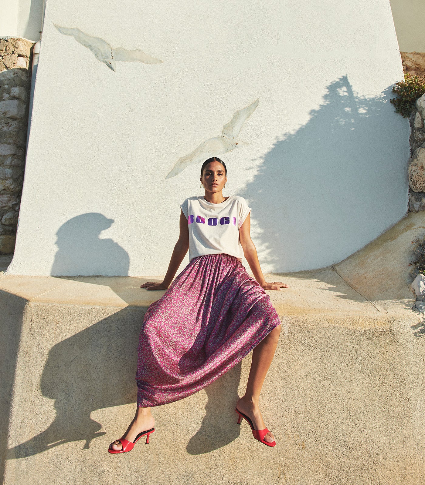 Flowy silhouettes, striking prints, and timeless textures merge to bring the Mediterranean's sunlit beauty and creative rhythm into your wardrobe.