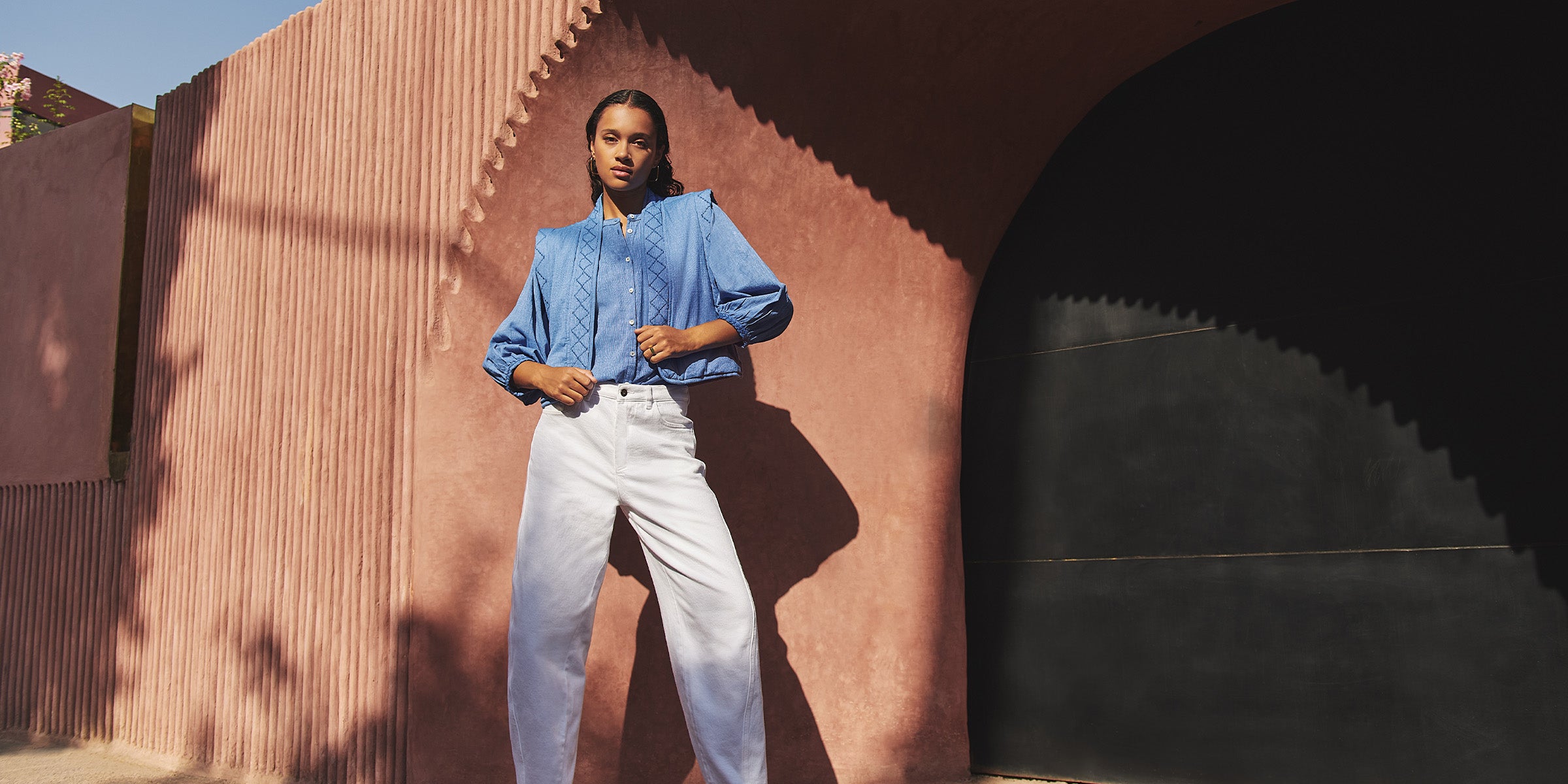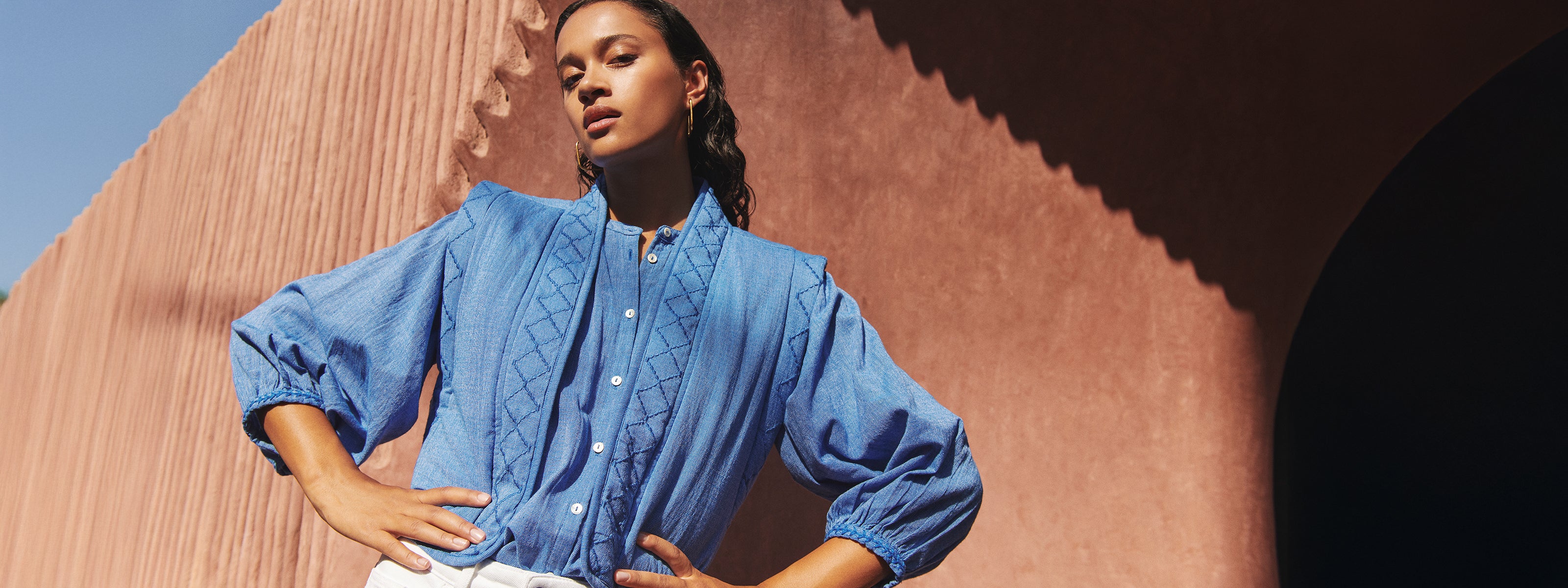 Inspired by this enchanting world, our Spring / Summer collection embraces the beauty of fluid silhouettes, warm hues, and refined craftsmanship. Effortless blouses with delicate details, flowing pants, off-shoulder tops, and our iconic sweater in fresh shades define the season. Elevated with bold accessories, like statement sunglasses and elegant jewellery.