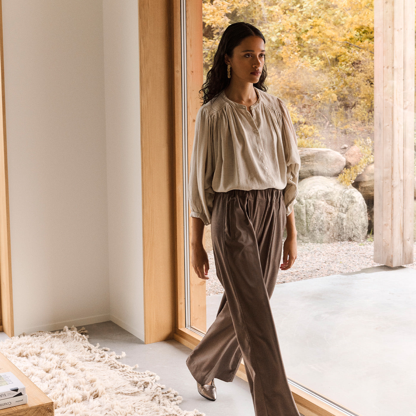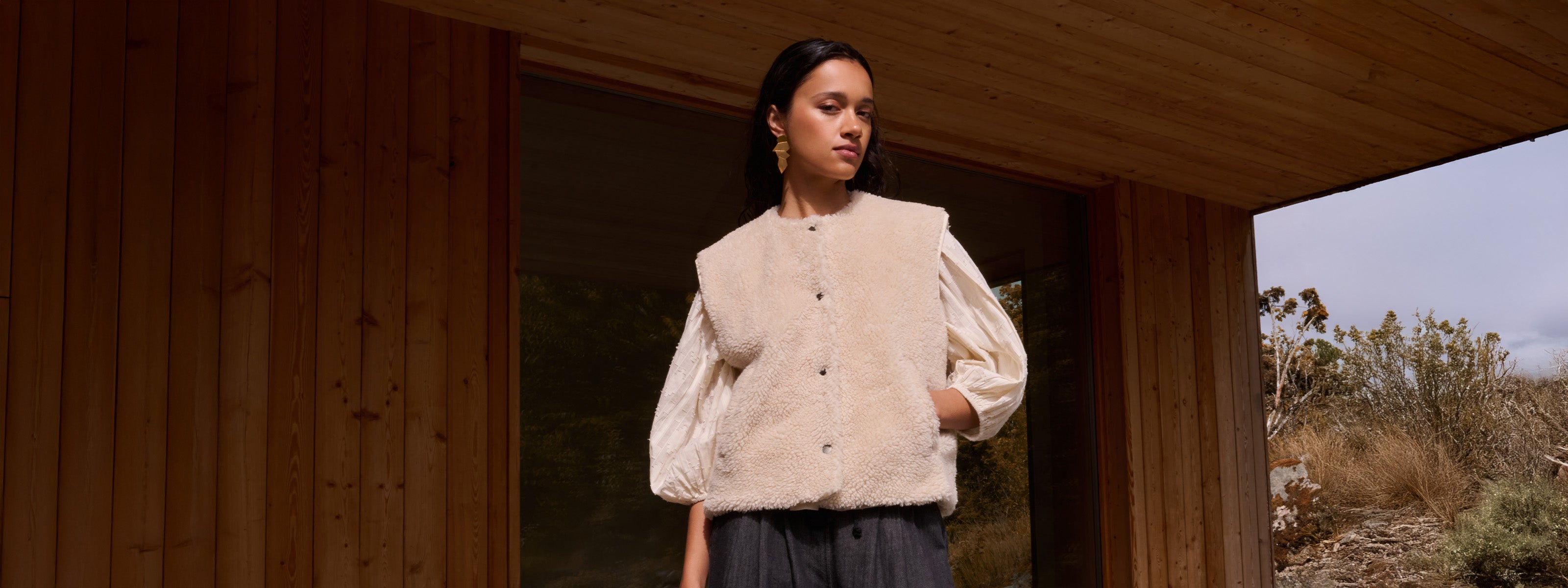 This theme is rooted in neutral shades, evoking stillness and subtle strength. Think heavy knits, furry gilets, and silhouettes that ease into the moment. Amid the soft tones, colourful details and chromatic sparks lift the