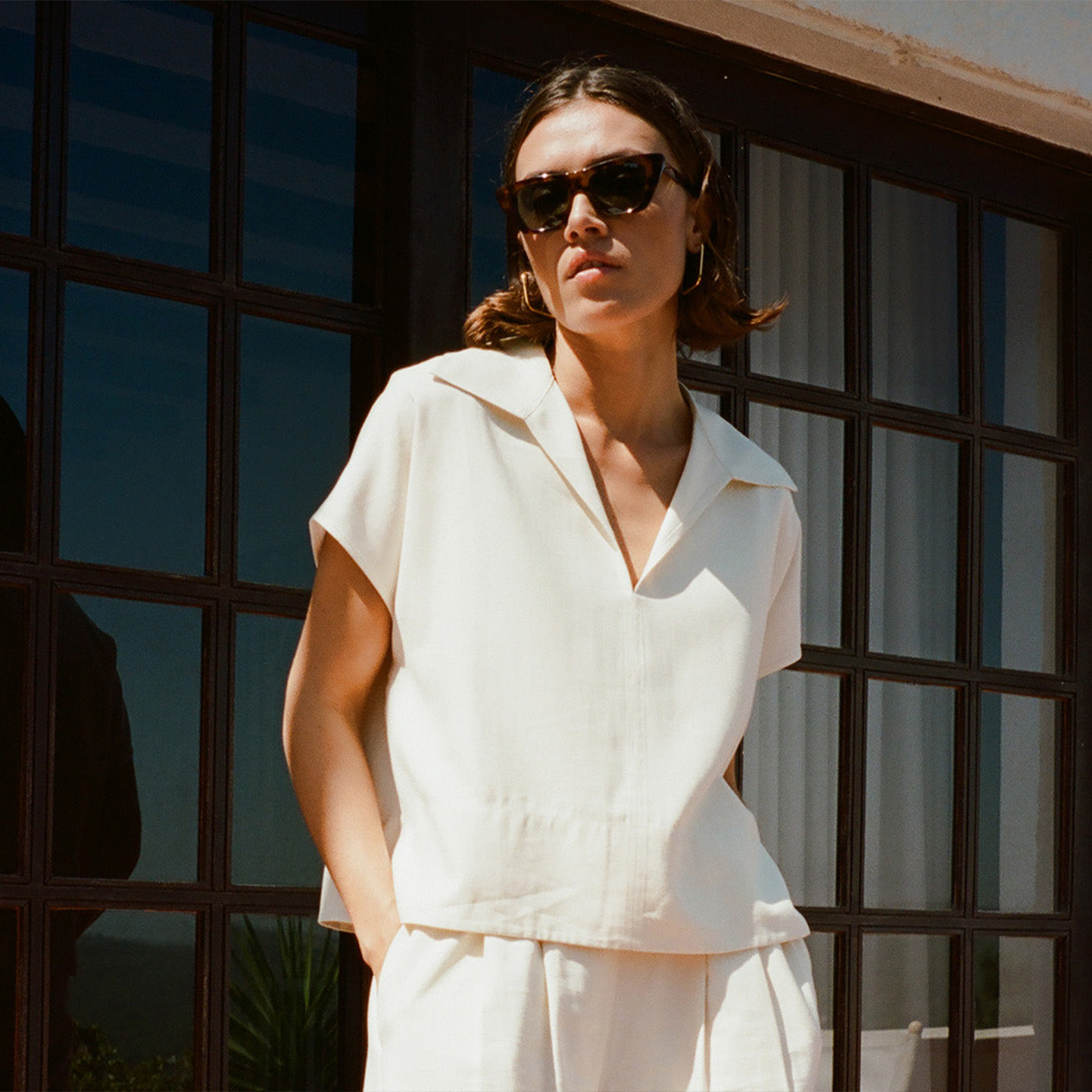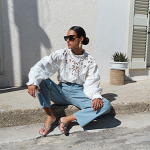 This new collection brings soft silhouettes and sun-drenched tones to life. Think airy linens, flowing dresses, and prints that whisper of faraway places. Think sunny reflections, wide open skies and shadows dancing across whitewashed walls.