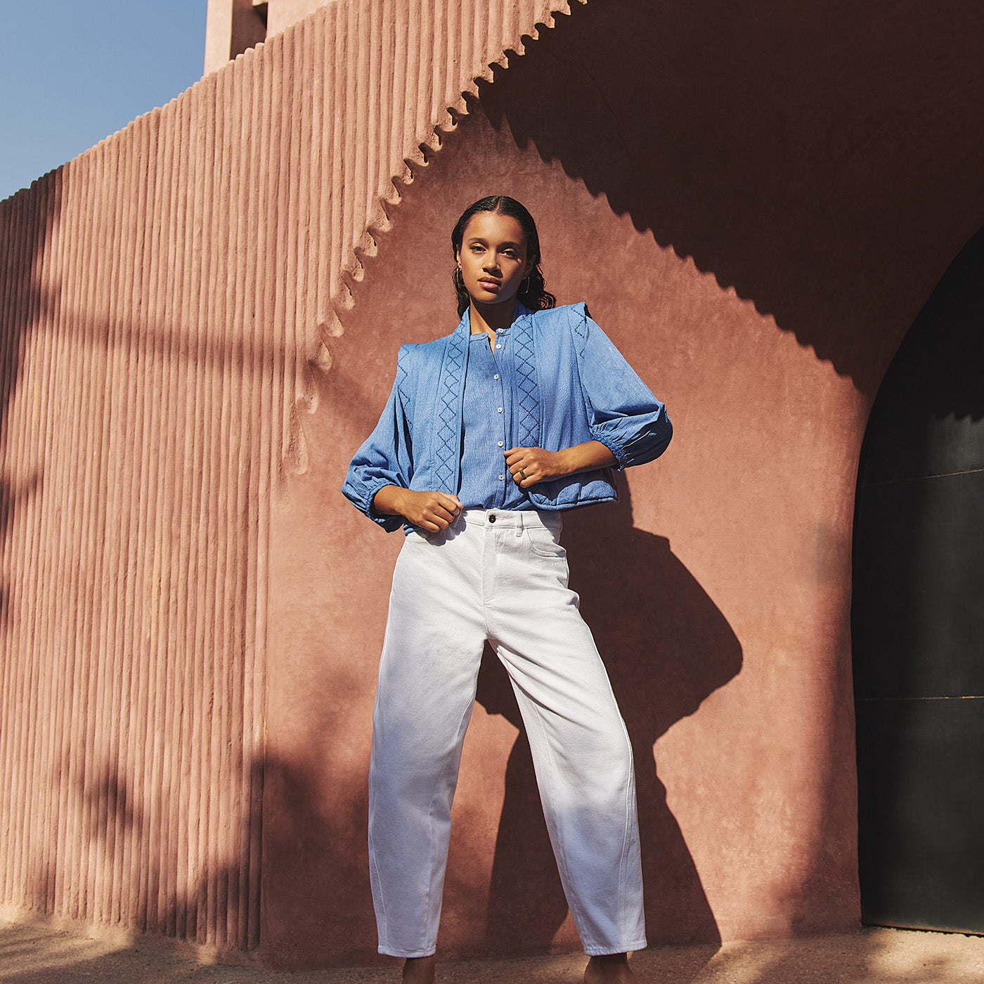 Marokkanischer Glanz, eine Reise zeitloser Eleganz – Diese Saison entführen wir Sie in das Herz Marokkos. Ein Ort voller Magie und endloser Anziehungskraft, an dem goldenes Licht, lebendige Energie und zeitlose Eleganz zusammenkommen. Inspiriert von dieser bezaubernden Welt umfasst unsere Frühjahrs-/Sommerkollektion die Schönheit fließender Silhouetten, warmer Farbtöne und raffinierter Handwerkskunst. Lässige Blusen mit zarten Details, fließende Hosen, schulterfreie Oberteile und unser ikonischer Pullover in frischen Farbtönen bestimmen die Saison. Verfeinert durch auffällige Accessoires wie Statement-Sonnenbrillen und eleganten Schmuck.