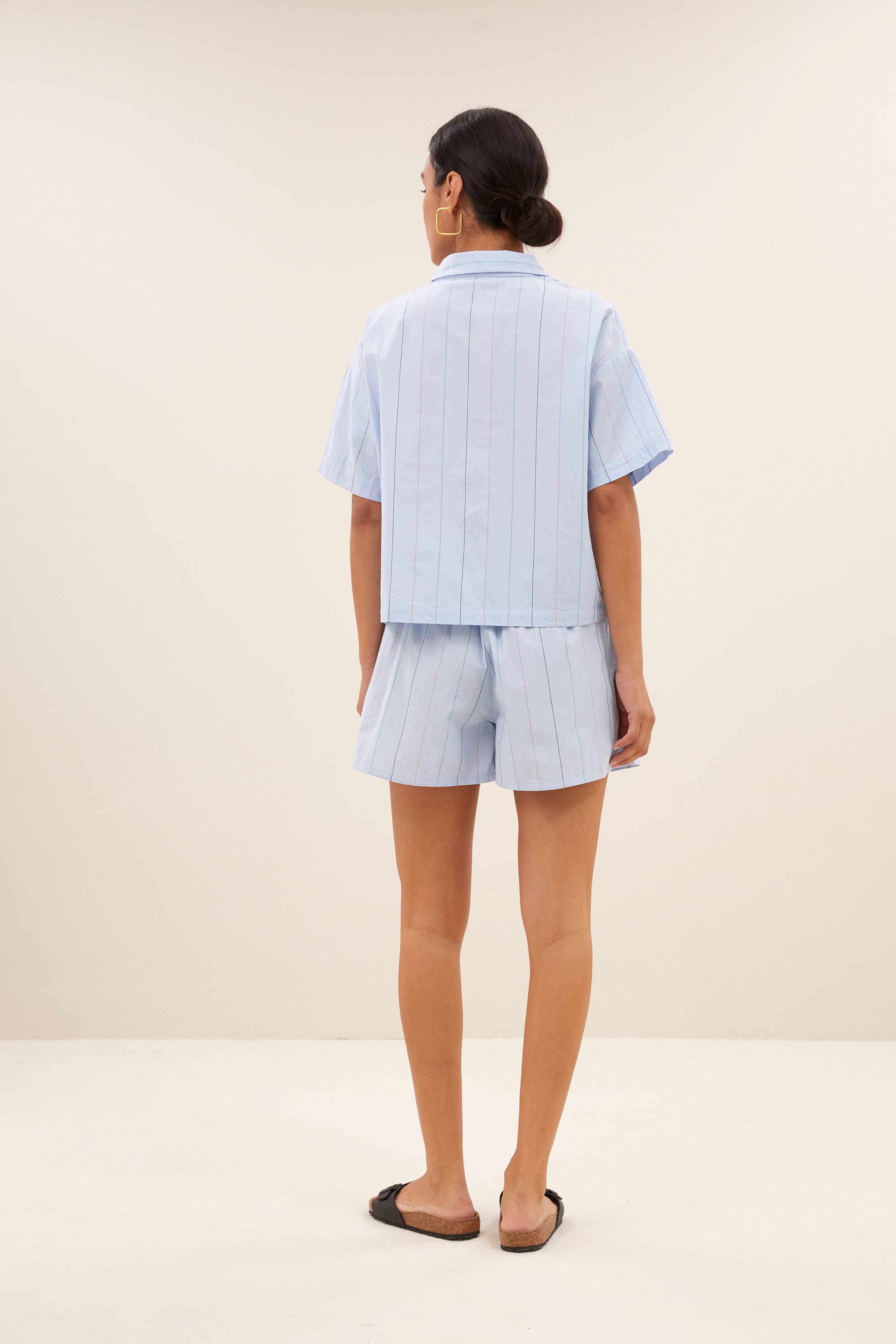 isa stripe chambray shorts | light blue stripe