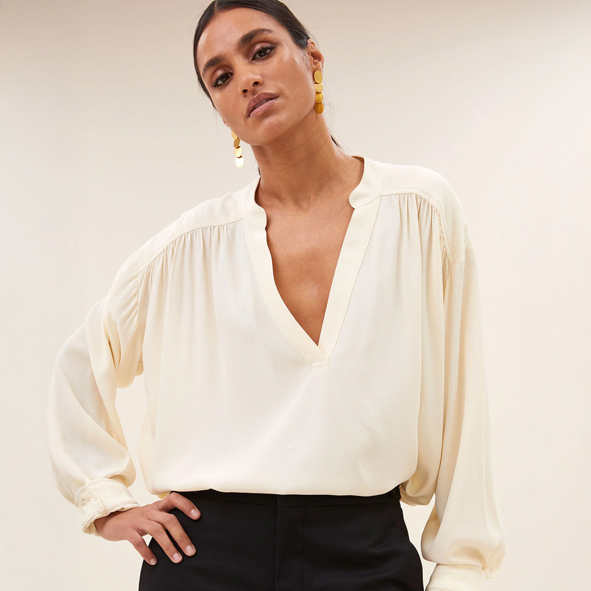 Viskose ist ein leichter und atmungsaktiver Stoff für höchsten Tragekomfort. Sein dezenter Glanz und der fließende Fall verleihen ihm einen eleganten, luxuriösen Look.