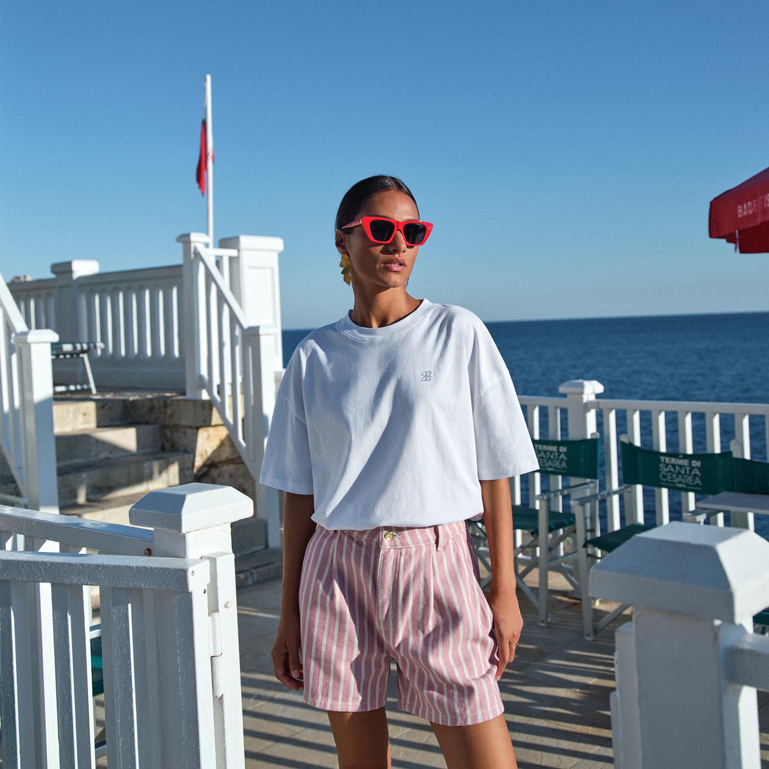 basic ls stripe top | chalk