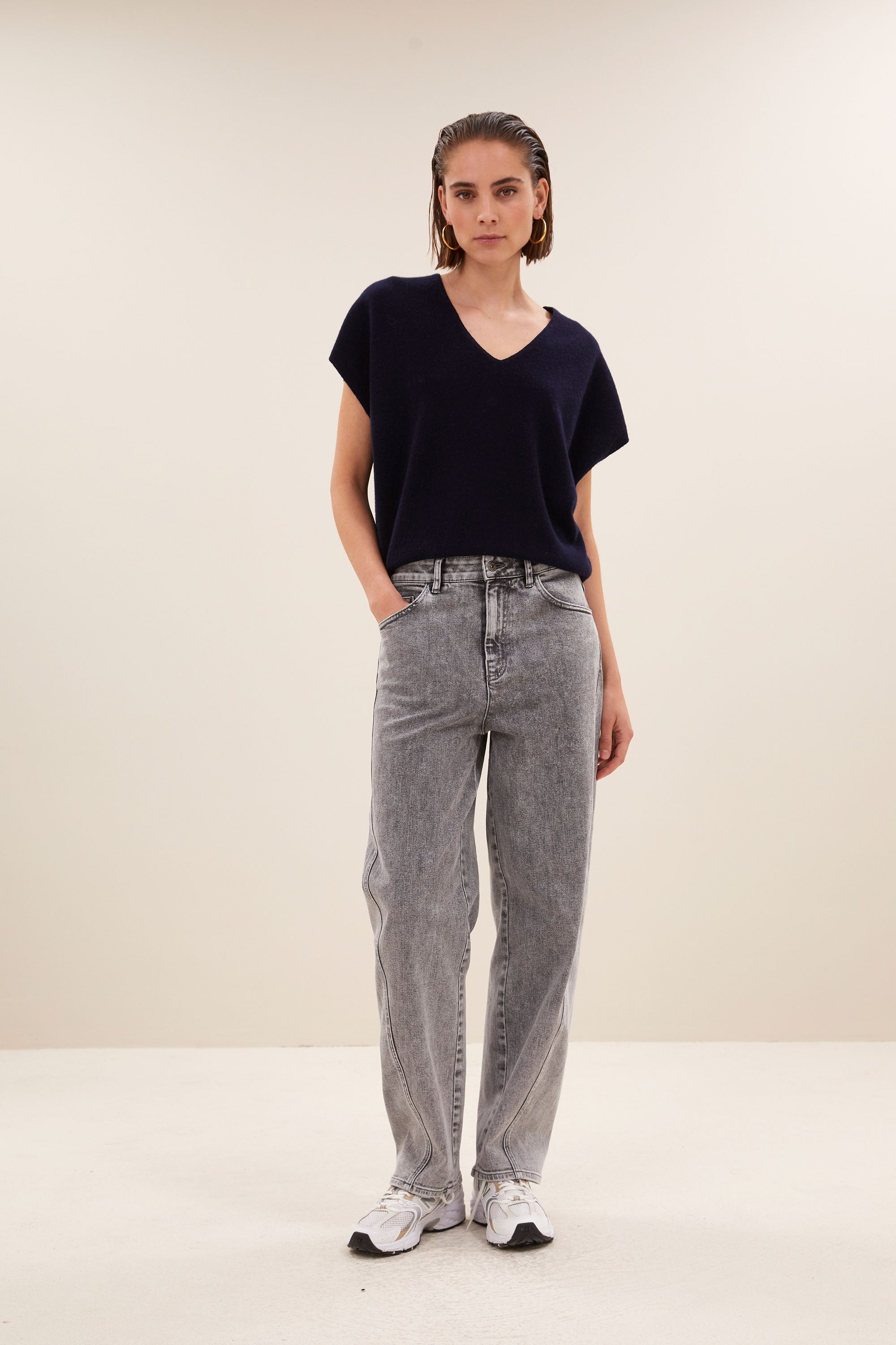 sammie pullover - midnight, verlaagde schoudernaden, ribgebreide randen, split aan zijkanten - by-bar - detailsammie pullover - midnight, verlaagde schoudernaden, ribgebreide randen, split aan zijkanten - by-bar - vooraanzicht