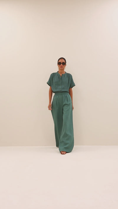 minte dark green blouse mit einem lässigen Look und einer bequemen, normalen Passform. Diese Bluse verfügt über einen stilvollen Rundhalsausschnitt und eine praktische Knopfleiste. Das gestreifte Muster verleiht einen verspielten Touch – perfekt für einen entspannten, aber modischen Look. Dank der kurzen Ärmel ideal für wärmere Tage. Ein vielseitiges Top für jede Garderobe.