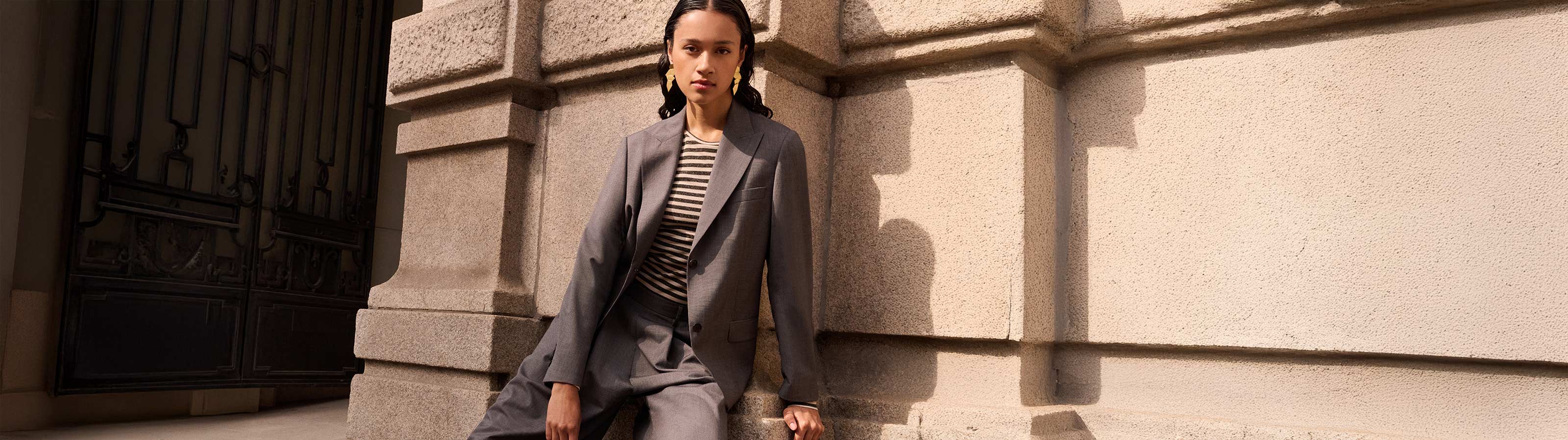 newjoelle wool jacket - sand melange, comfy fit, hidden side pockets, reversible  - by-bar - front viewjoelle wool jacket - sand melange, comfy fit, hidden side pockets, reversible  - by-bar - close-up