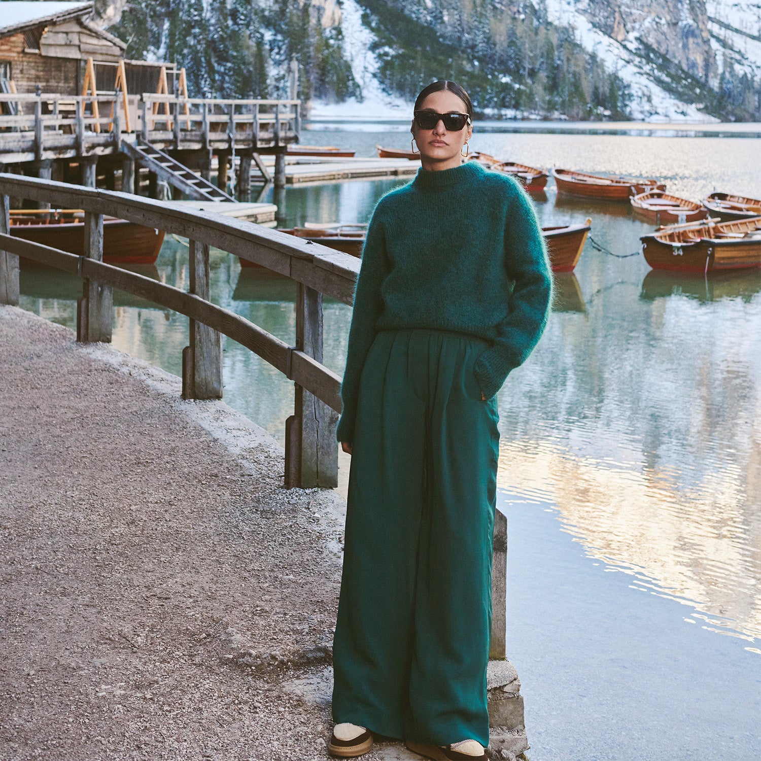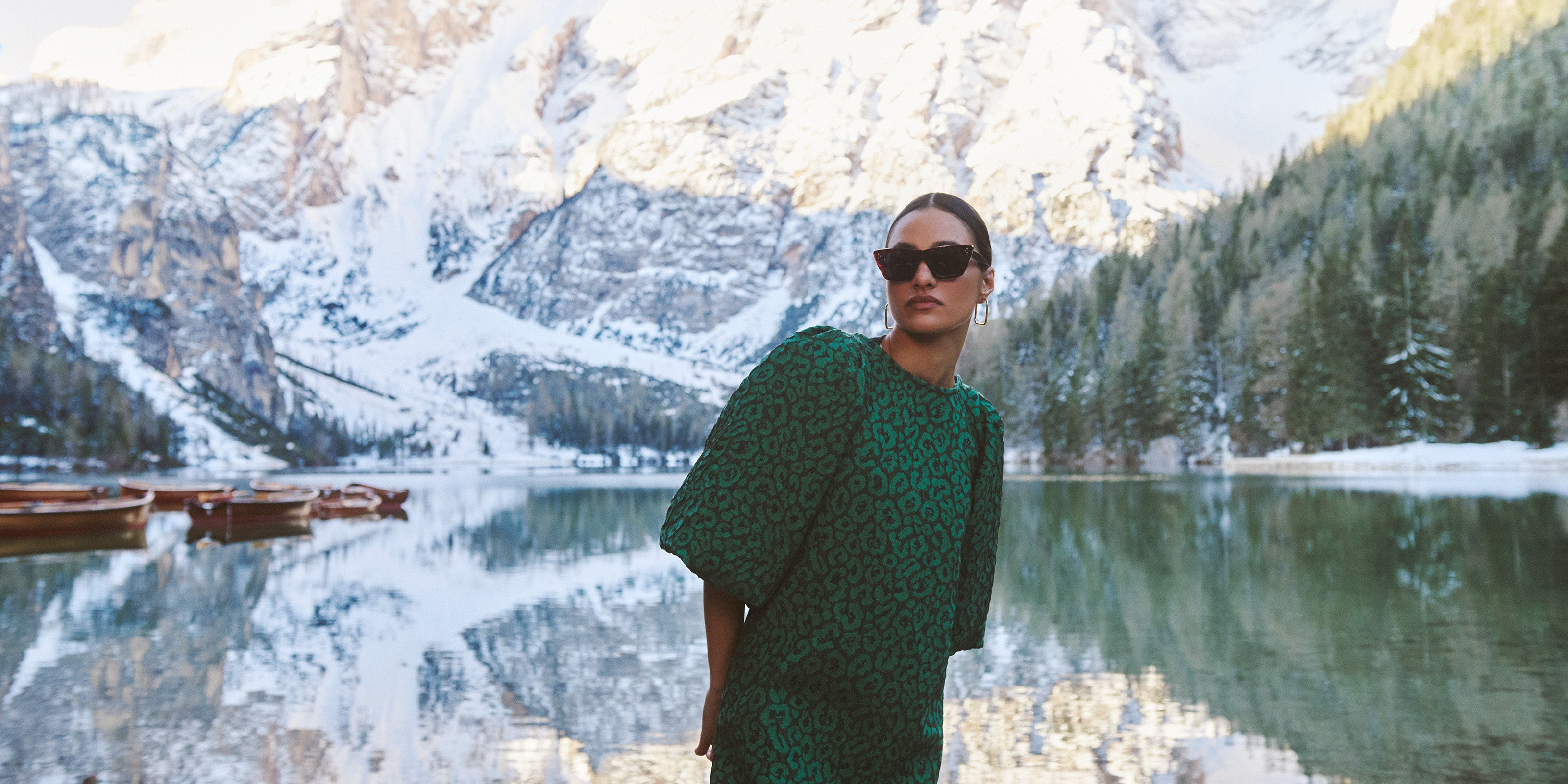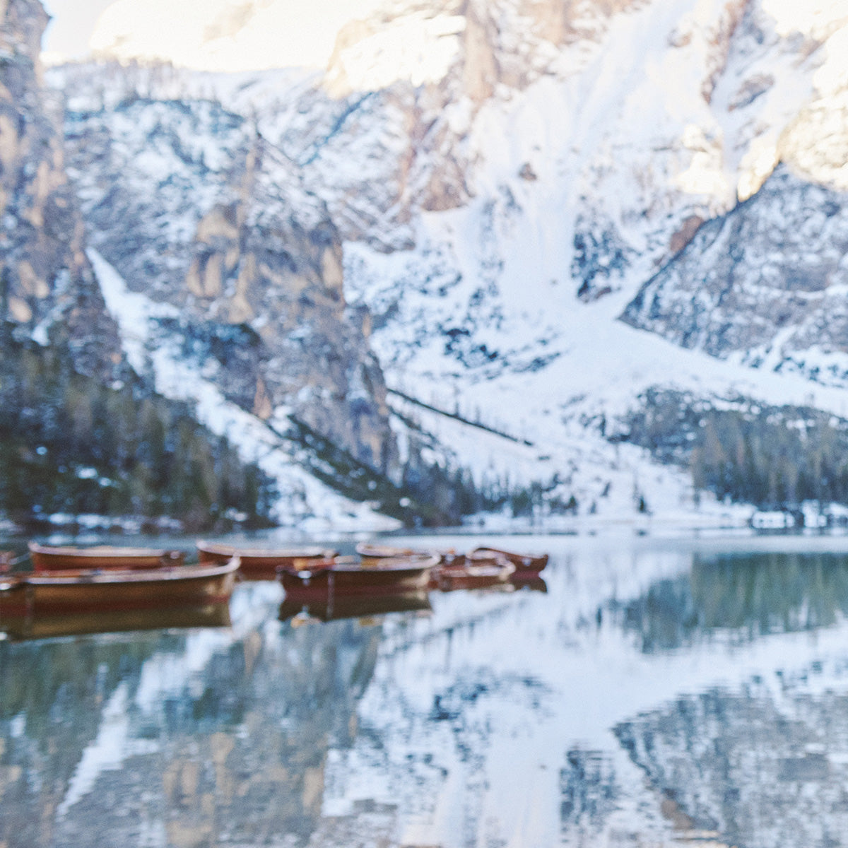Immerse yourself in the tranquil elegance of our latest collection, inspired by the breathtaking landscapes where mountains meet water. Our campaign, set against the snowy Dolomites and vibrant Lago di Braies, captures the serene beauty of nature's finest reflections.