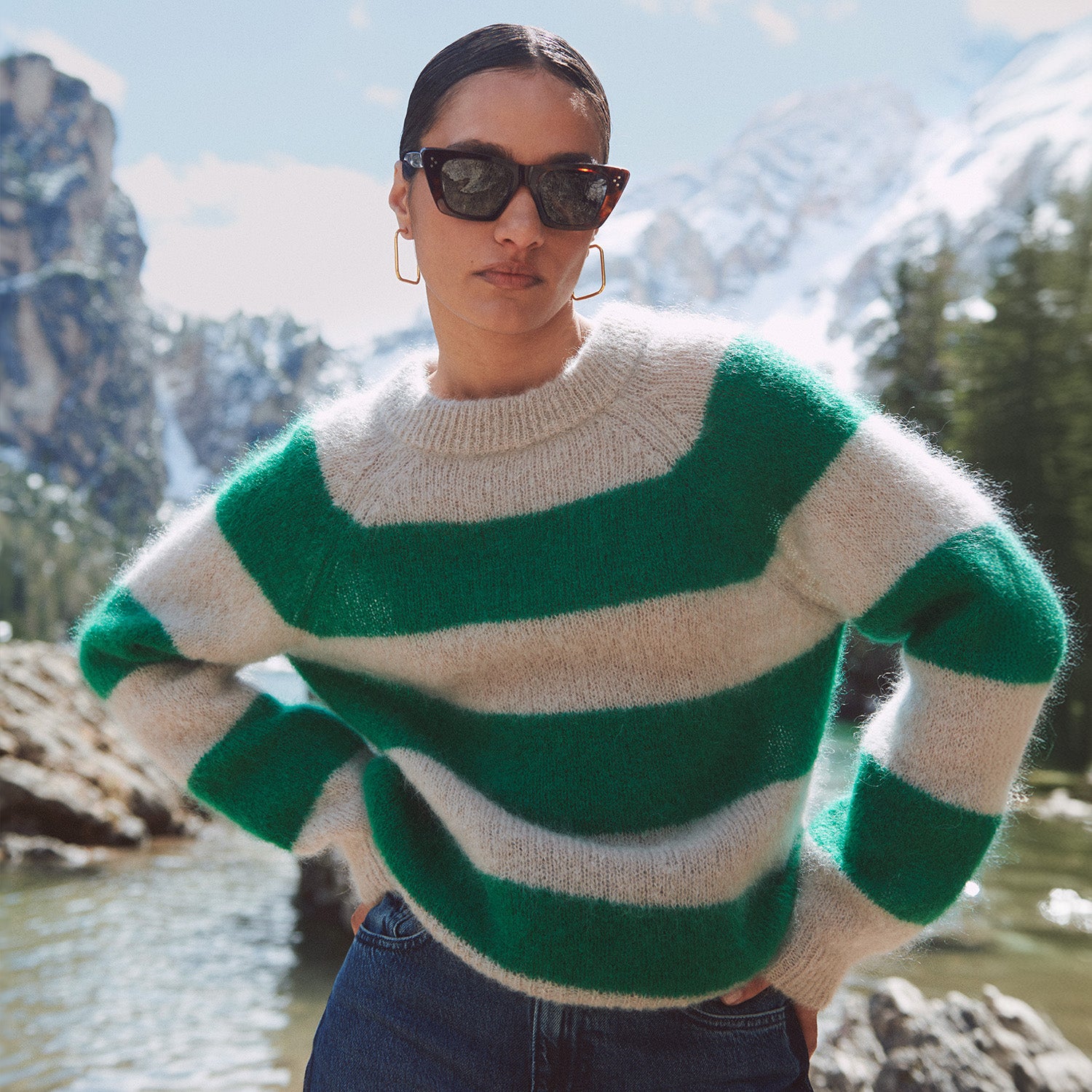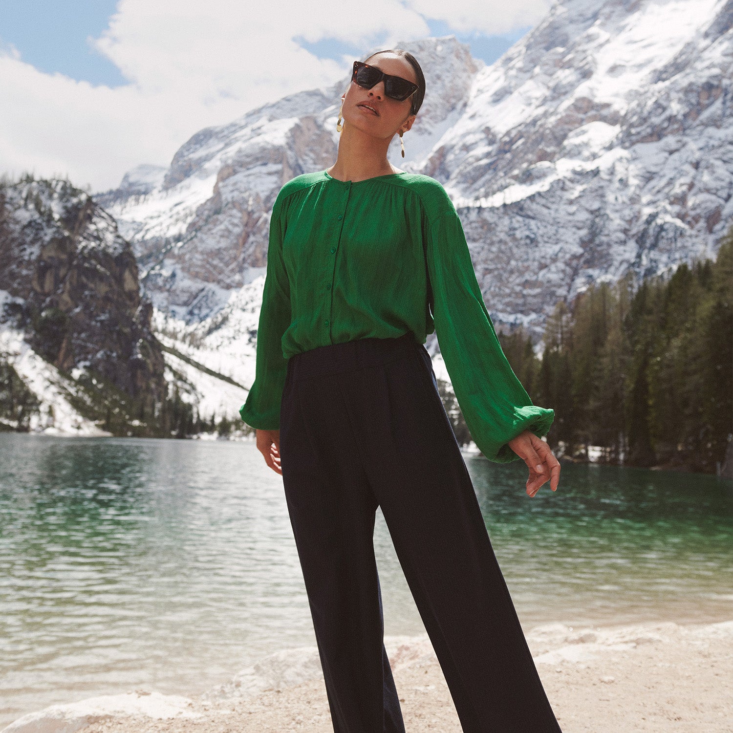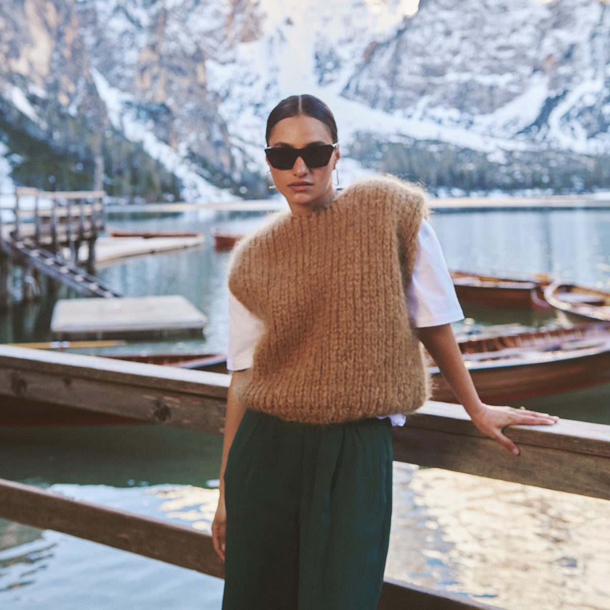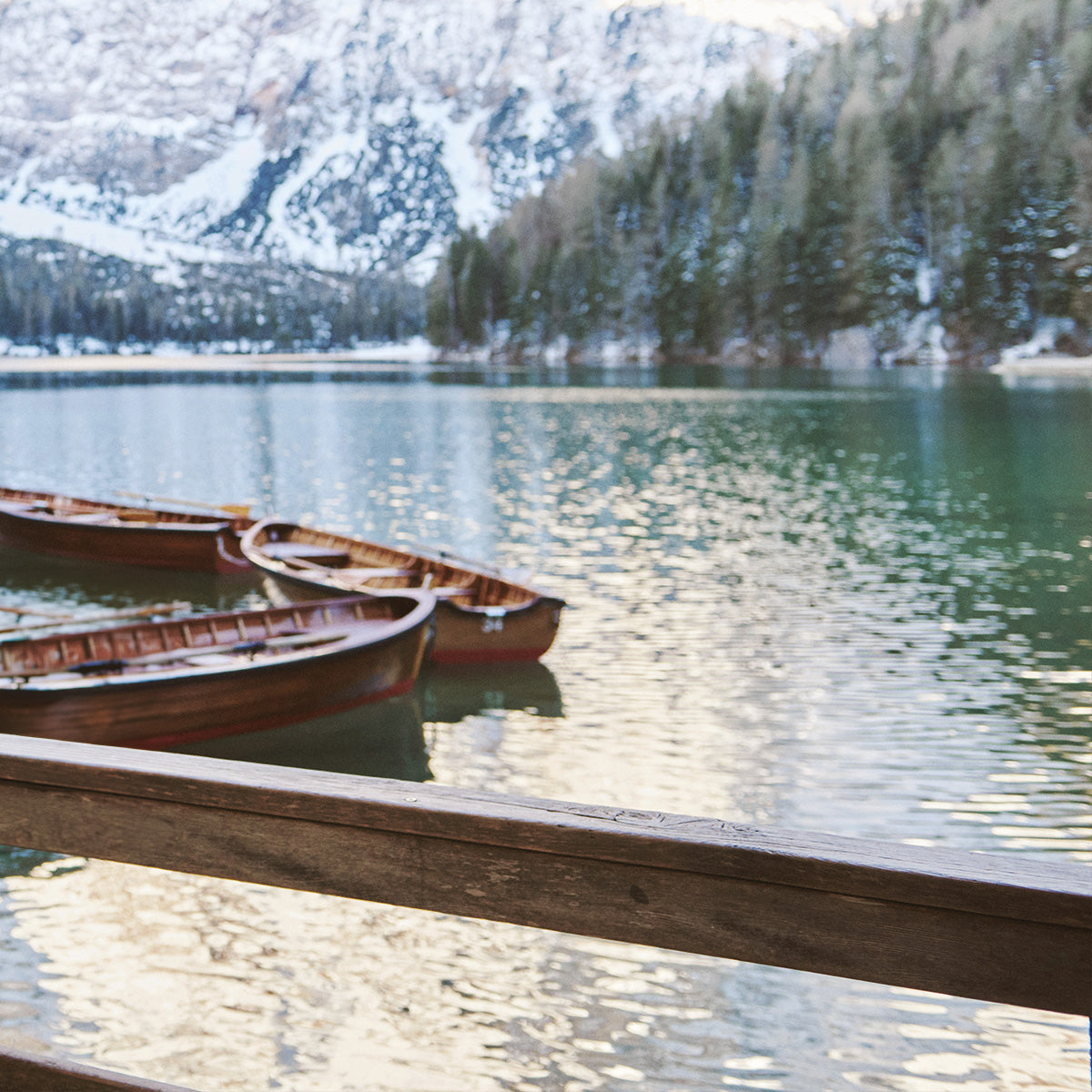 Immerse yourself in the tranquil elegance of our latest collection, inspired by the breathtaking landscapes where mountains meet water. Our campaign, set against the snowy Dolomites and vibrant Lago di Braies, captures the serene beauty of nature's finest reflections.