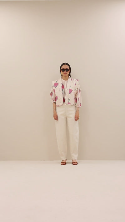 Discover the becky ikat blouse, a casual top with a comfortable, relaxed fit. This blouse is true to size and features voluminous sleeves, a round neckline, and a stylish button closure. The pleated details and playful pattern give the design a fresh, fashionable look. A sustainable choice that’s perfect for every day.