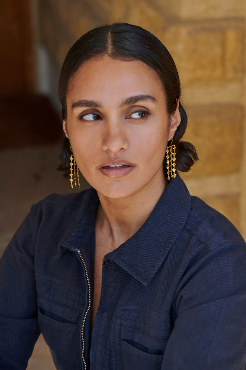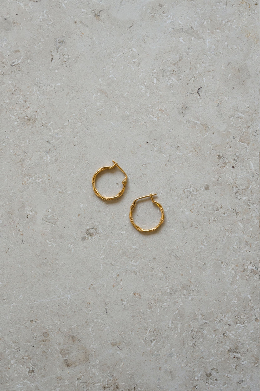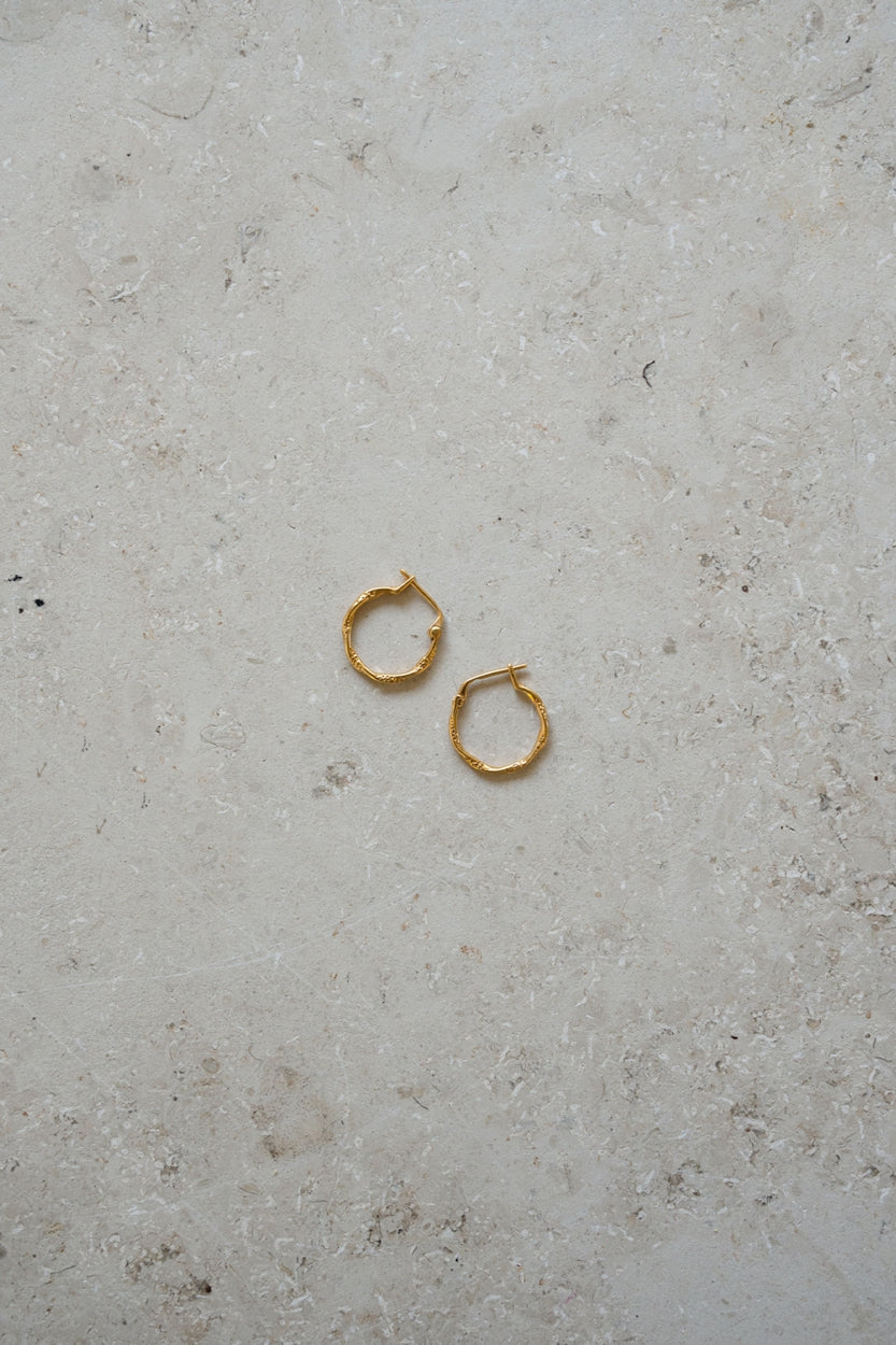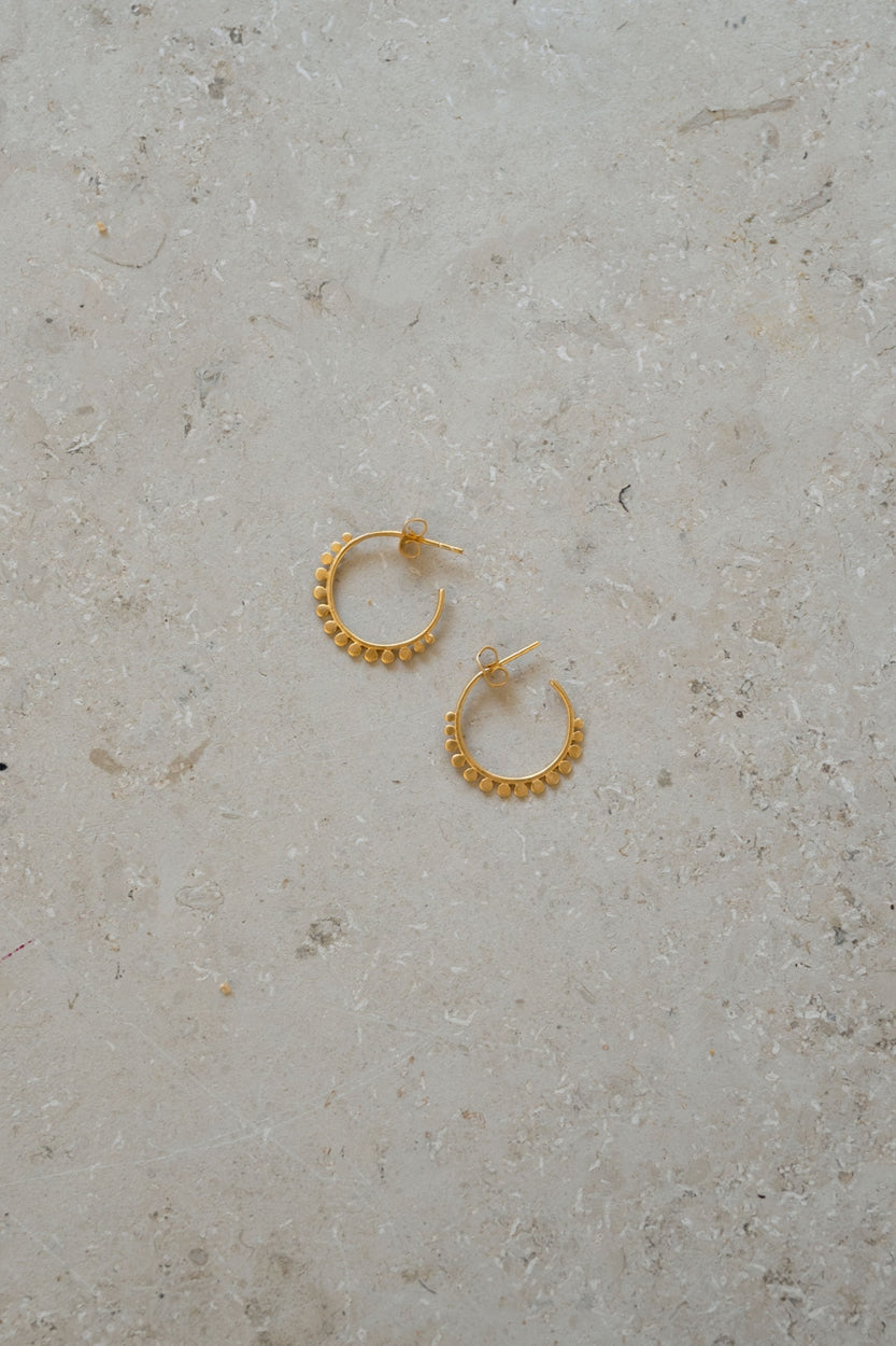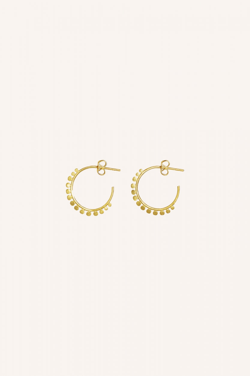 The ruby stud earring has a round shape with a round opening in the centre. The stud is made of copper with 3 layers of gold-plated gold. The earring measures 1 cm and is sold as a set.