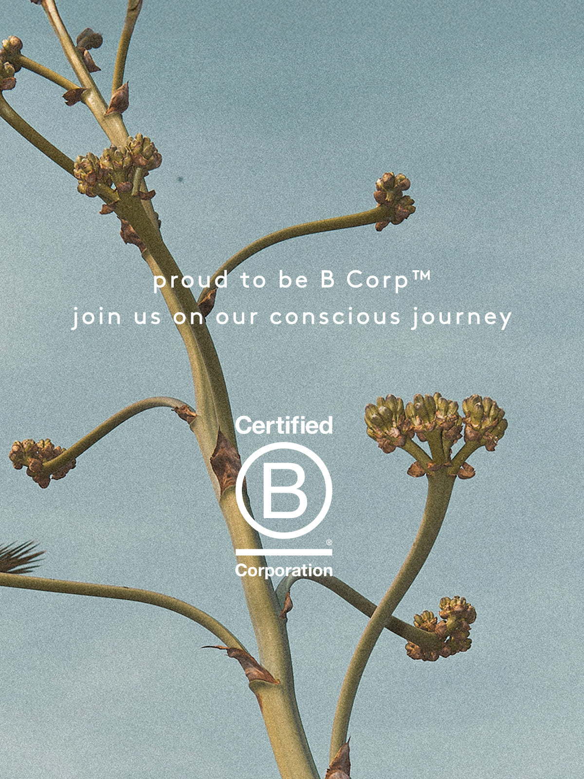 Estamos comprometidos a utilizar nuestro negocio como una fuerza para el bien al asumir la responsabilidad de nuestro impacto en el planeta, las personas y los productos que creamos. Convertirse en una Empresa B marca un paso importante en nuestro viaje consciente, pero no termina aquí. Continuamente aprendemos, tomamos medidas y trabajamos estrechamente con nuestros socios para reducir nuestra huella y maximizar el impacto social. Al ser transparentes sobre nuestro viaje y las decisiones conscientes que tomamos, nuestro objetivo es crear un cambio positivo y esperamos inspirar a otros a hacer lo mismo. "Estamos comprometidos a minimizar nuestro impacto, tomando decisiones conscientes y ofreciendo estilos de alta calidad para un guardarropa que durará".