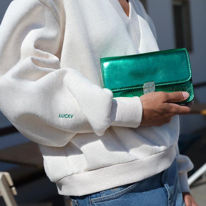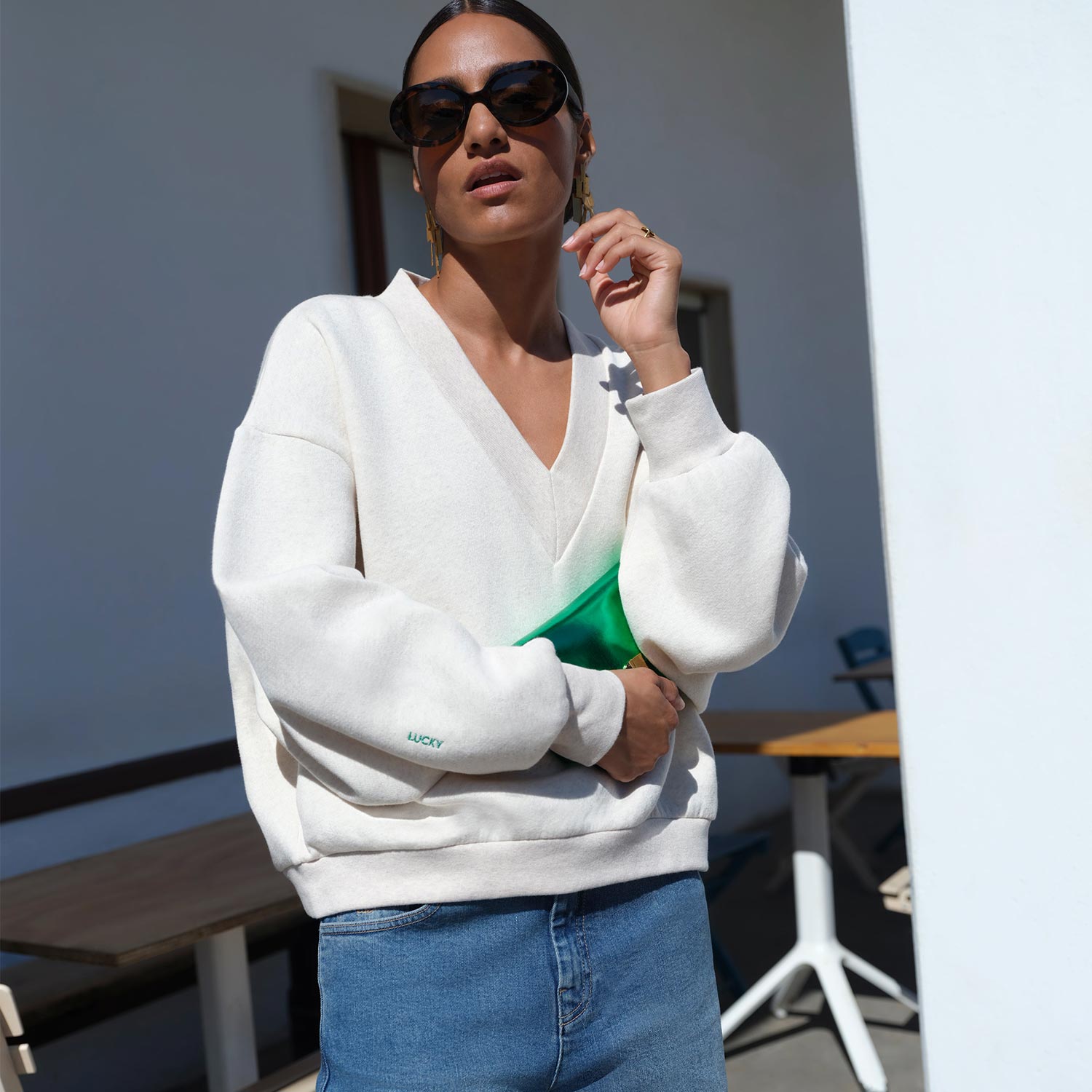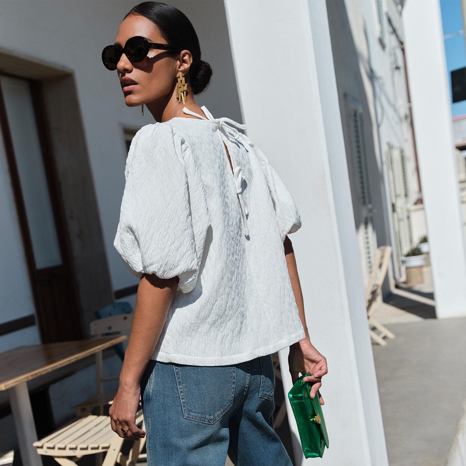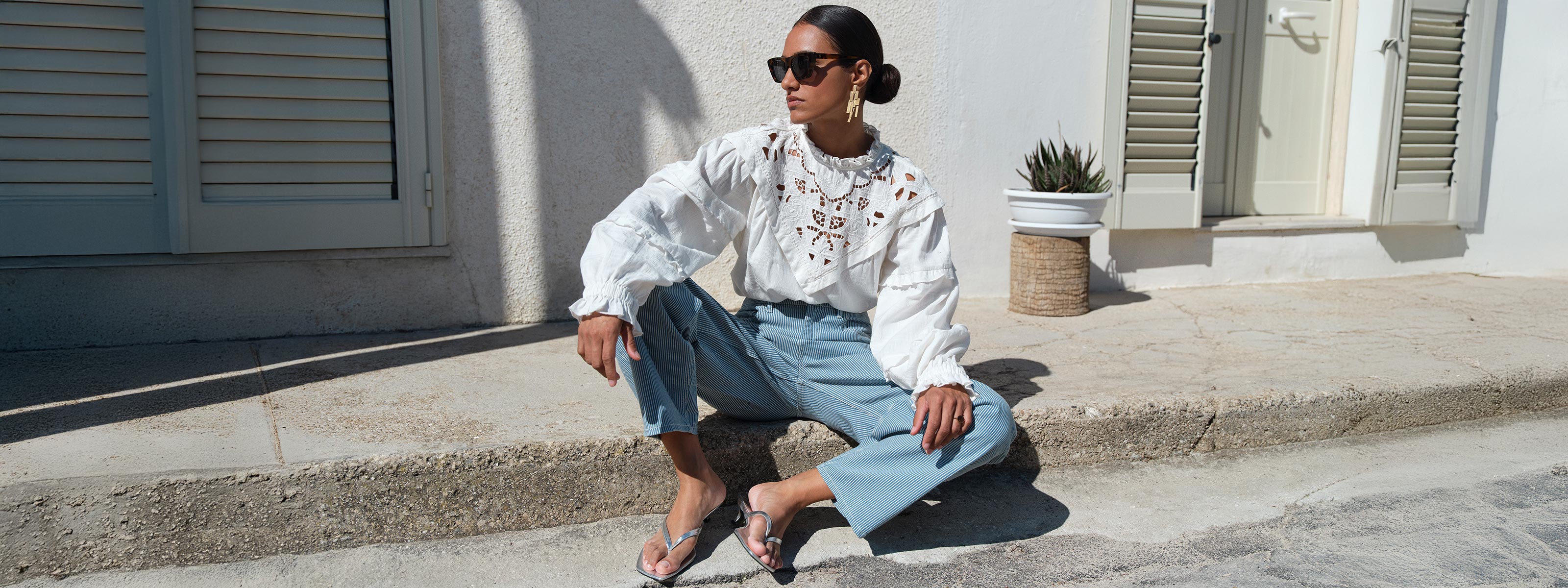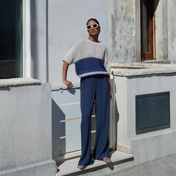« Trésors ensoleillés » capture l'esprit de la découverte. La collection regorge de verts profonds, de tricots revisités et de roses tendres comme les couchers de soleil. Elle se décline également en pantalons remarquables, détails originaux et pièces parfaites pour passer des marchés matinaux aux soirées improvisées.