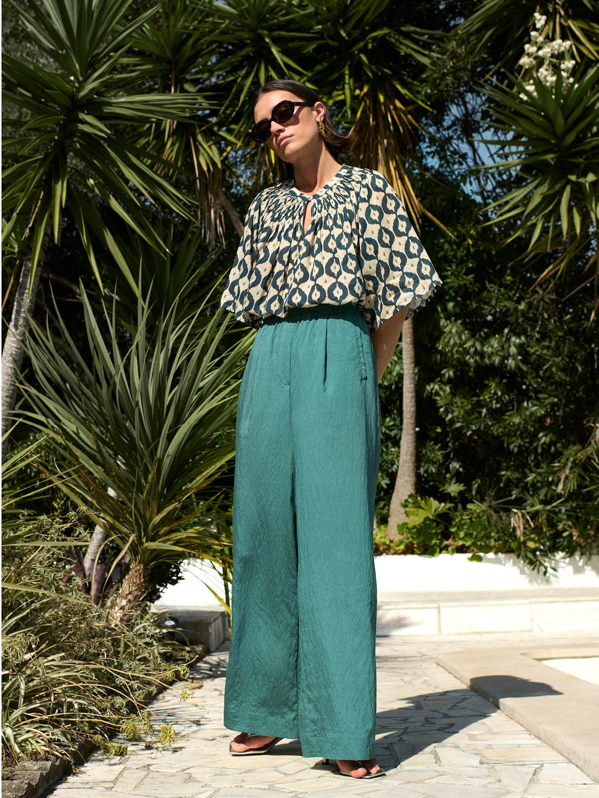 Bold Bloom is about expression. Greens and pinks come into focus through refreshing prints, framed by palms and warm summer light. The collection draws from vintage resort moments, afternoons by the pool, shaded terraces, sunlit paths lined with tiles and greenery.