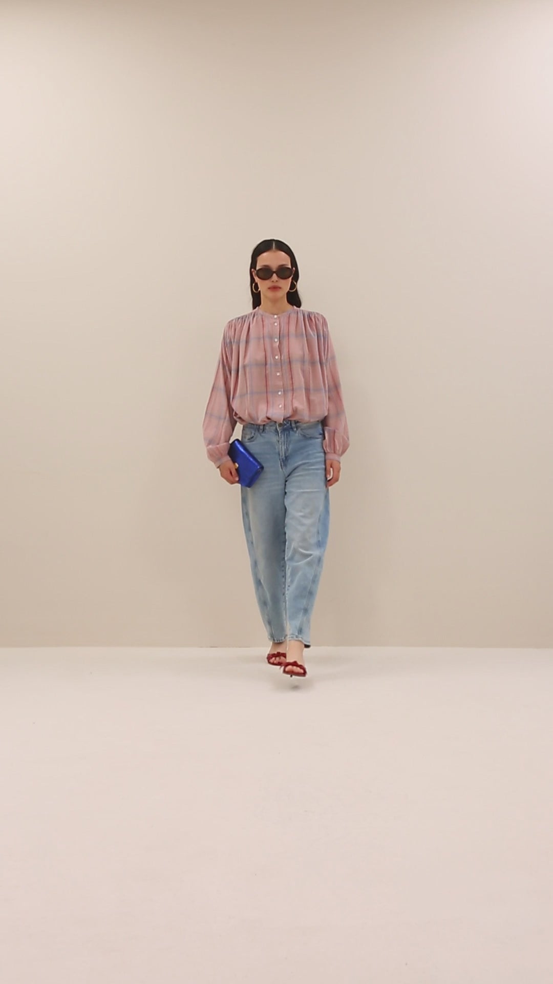 De nyka pink check blouse combineert een casual chic stijl met comfort dankzij de normale pasvorm. Deze blouse heeft een ronde halslijn en een knoopsluiting, perfect voor een moeiteloze, verfijnde look die geschikt is voor elke dag. De lange mouwen en het subtiele printpatroon maken het een veelzijdige toevoeging aan je garderobe.