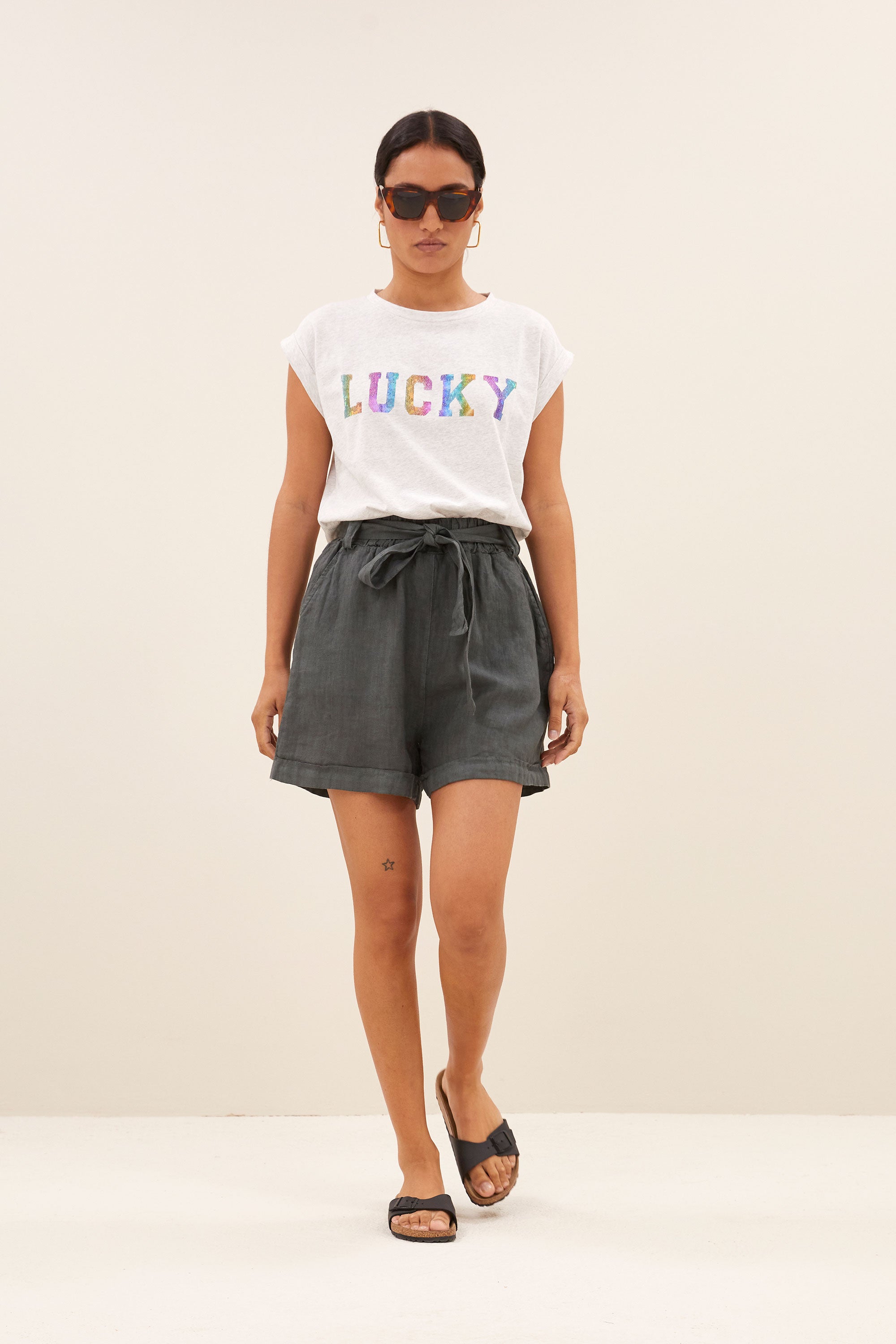 thelma lucky rainbow top | light grey melee
