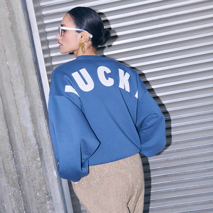 This drop embraces blue in all its depth, from fresh sky blue tones to deep navy’s. It’s a colour story that moves with intention, full of graphic textures, strong lines and standout shapes that bring clarity and edge to your everyday wardrobe.
