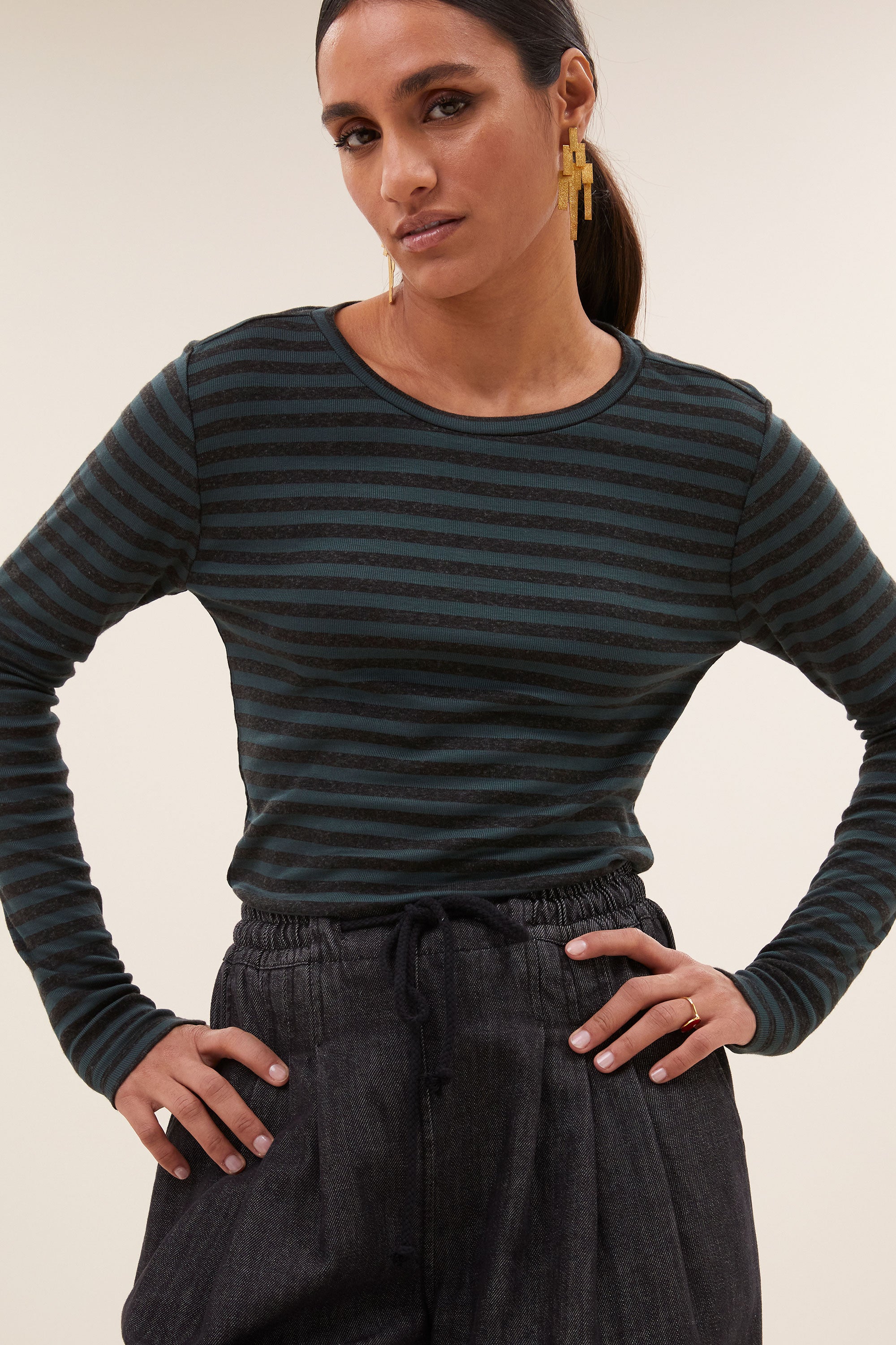dried basilOntdek het basic ls melange stripe top, een all-time classic die niet mag ontbreken in je garderobe. Met een aansluitende fit en comfortabele lange mouwen biedt dit gestreepte shirt een casual look die perfect is voor elke dag. Dankzij de ronde halslijn en normale pasvorm voel je je altijd stijlvol en ontspannen. Een echte must-have!