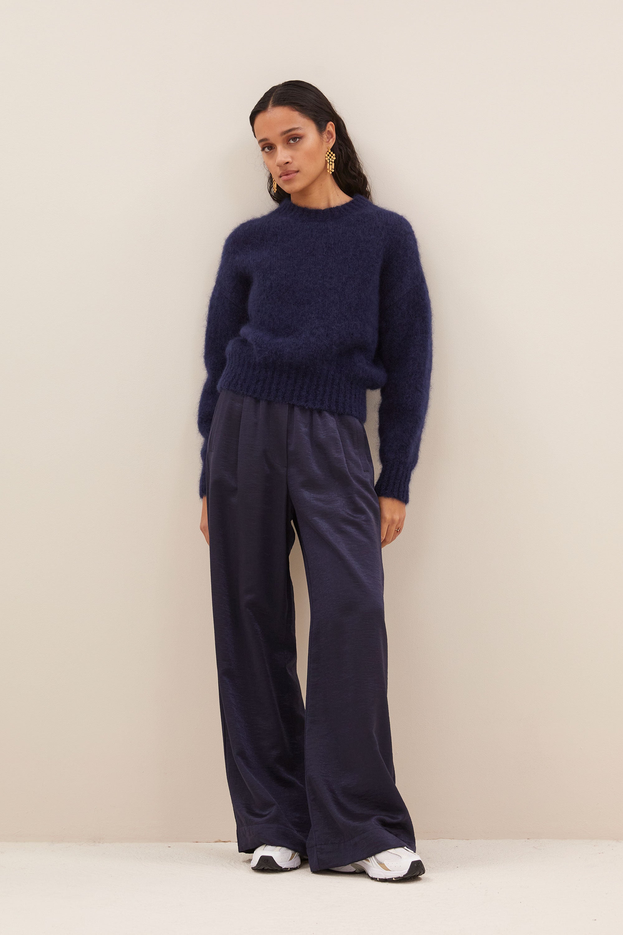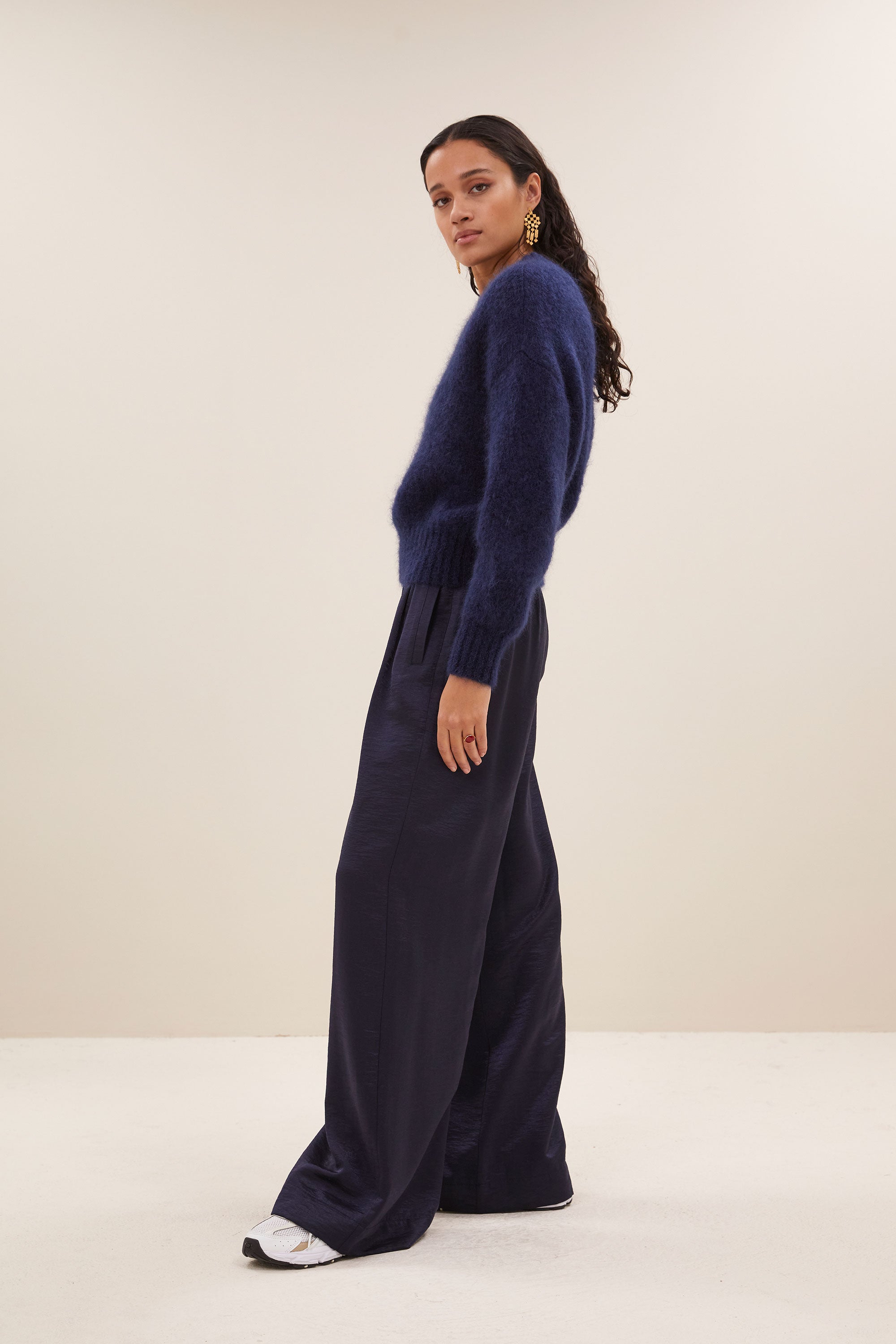 midnightDe benji metallic pants combineert comfort en stijl met een losse pasvorm en hoge taille. Dankzij de elastische band en verborgen steekzakken geniet je van een perfecte fit en praktische opbergruimte. De geplooide details geven deze broek een verfijnde uitstraling, ideaal voor gelegenheden waarbij je wilt stralen.